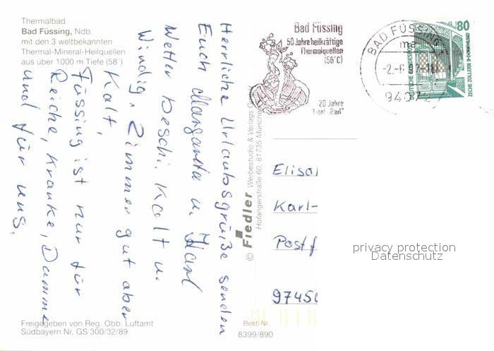 72832006 alte Postkarte Bad Fuessing Thermalbad Fliegeraufnahme postalisch gelaufen Erhaltung siehe scans [FriedD77] KatCode: 11110009275116