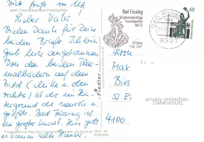 72828287 alte Postkarte Bad Fuessing Thermalbad Fliegeraufnahme postalisch gelaufen Erhaltung siehe scans [FriedD77] KatCode: 11110009275116