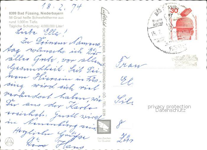 72599689 alte Postkarte Bad Fuessing Thermalbad Fliegeraufnahme postalisch gelaufen Erhaltung siehe scans [FriedD77] KatCode: 11110009275116