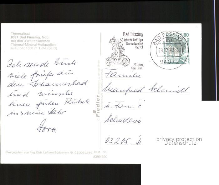 72011902 alte Postkarte Bad Fuessing Thermalbad Fliegeraufnahme postalisch gelaufen KatCode: 11110009275116