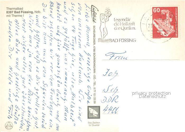 73713493 alte Postkarte Bad Fuessing Thermalbad Fliegeraufnahme mit Therme I postalisch gelaufen Erhaltung siehe scans [WerneD78] KatCode: 11110009275116
