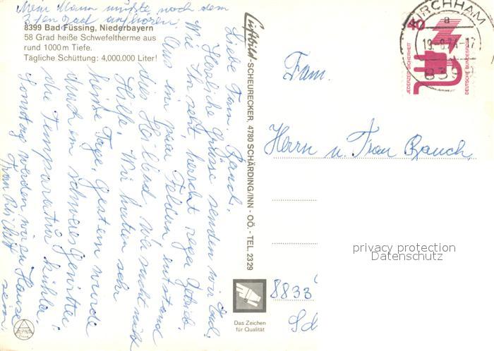 73254720 alte Postkarte Bad Fuessing Thermalbad Fliegeraufnahme Steg postalisch gelaufen Erhaltung siehe scans [FriedD77] KatCode: 11110009275116