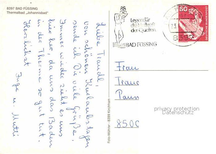 72928932 alte Postkarte Bad Fuessing Thermalbad Johannisbad Kurklinikum postalisch gelaufen Erhaltung siehe scans [FriedD77] KatCode: 11110009275116
