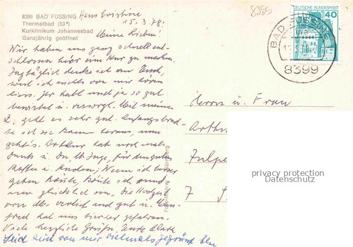 74049566 alte Postkarte BAD FuessING Thermalbad Kurklinikum Johannesbad Kurort postalisch gelaufen Fliegeraufnahme Erhaltung siehe scans [FriedD77] KatCode: 11110009275116