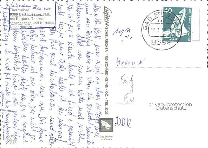 72527663 alte Postkarte Bad Fuessing Thermalbad Kurpark Therme Johannesbad Kurklinik postalisch gelaufen Erhaltung siehe scans KatCode: 11110009275116