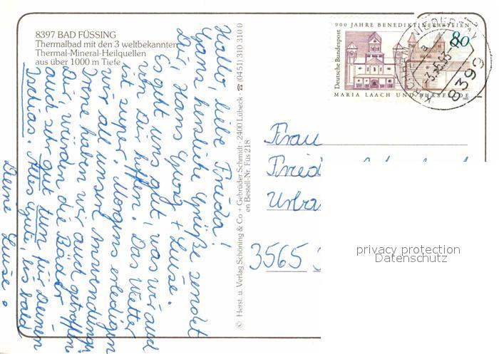 72882052 alte Postkarte Bad Fuessing Thermalbad Mineral Heilquellen Sprudel Kurpark postalisch gelaufen Erhaltung siehe scans [FriedD77] KatCode: 11110009275116