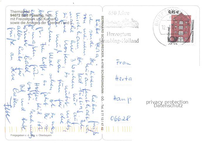 74009540 alte Postkarte BAD FuessING Thermalbad mit Freizeit und Kurpark Fliegeraufnahme postalisch gelaufen Erhaltung siehe scans [WerneD78] KatCode: 11110009275116
