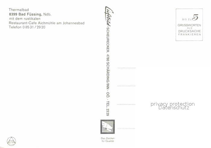 72783899 Bad Fuessing Thermalbad Restaurant Cafe Aichmuehle postalisch nicht gelaufen Erhaltung siehe scans [FriedD77] KatCode: 11110009275116
