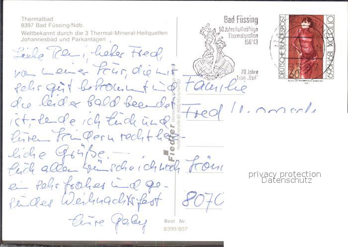 72126296 alte Postkarte Bad Fuessing Thermalbad Schwimmbad Skulptur Parkanlagen postalisch gelaufen Erhaltung siehe scans KatCode: 11110009275116