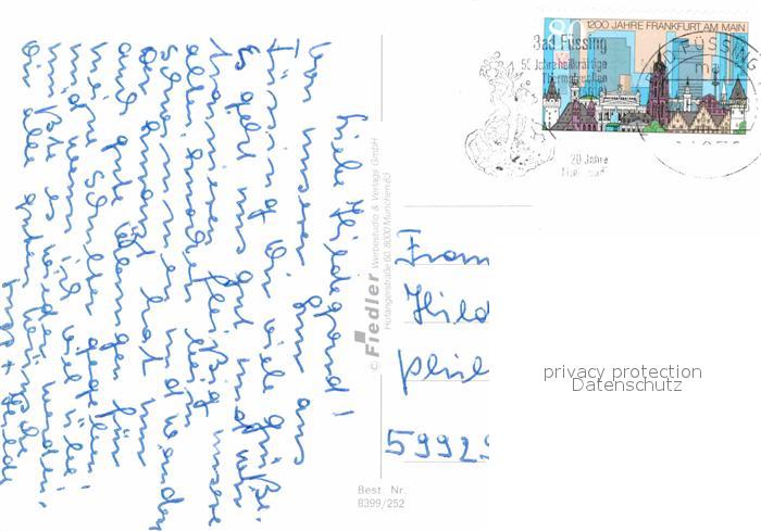 72721014 alte Postkarte Bad Fuessing Thermalbad Stadtbild mit Kirche Innenansicht postalisch gelaufen Erhaltung siehe scans [FriedD77] KatCode: 11110009275116