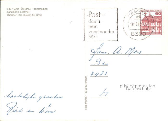 72512546 alte Postkarte Bad Fuessing Thermalbecken Park Terrasse postalisch gelaufen Erhaltung siehe scans KatCode: 11110009275116