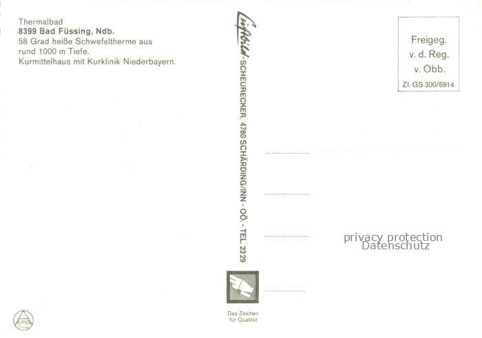 74049697 BAD FuessING Thermalheilbad im Kurzentrum Kurmittelhaus mit Kurklinik postalisch nicht gelaufen Fliegeraufnahme Erhaltung siehe scans [FriedD77] KatCode: 11110009275116