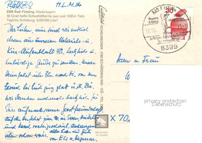 73704131 alte Postkarte Bad Fuessing Thermalheilbad postalisch gelaufen Fliegeraufnahme Erhaltung siehe scans [FriedD77] KatCode: 11110009275116