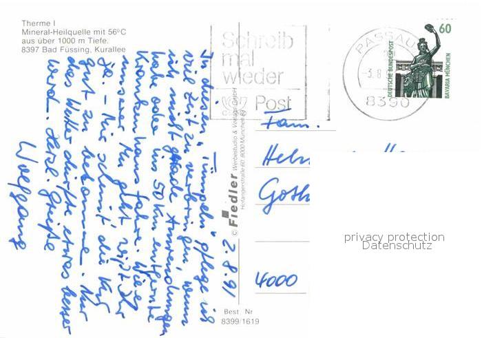 72885751 alte Postkarte Bad Fuessing Therme Thermalbad Mineralheilquelle postalisch gelaufen Erhaltung siehe scans [FriedD77] KatCode: 11110009275116