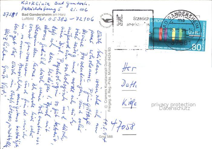 72534101 alte Postkarte Bad Gandersheim am Harz Fliegeraufnahme postalisch gelaufen Erhaltung siehe scans [FriedD77 kt118box] KatCode: 11110003155001