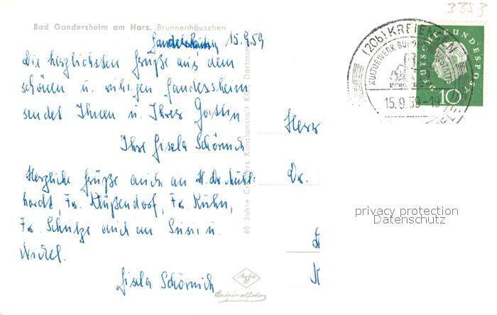 43352532 alte Postkarte Bad Gandersheim Brunnenhaeuschen postalisch gelaufen Erhaltung siehe scans [WerneD78] KatCode: 11110003155001