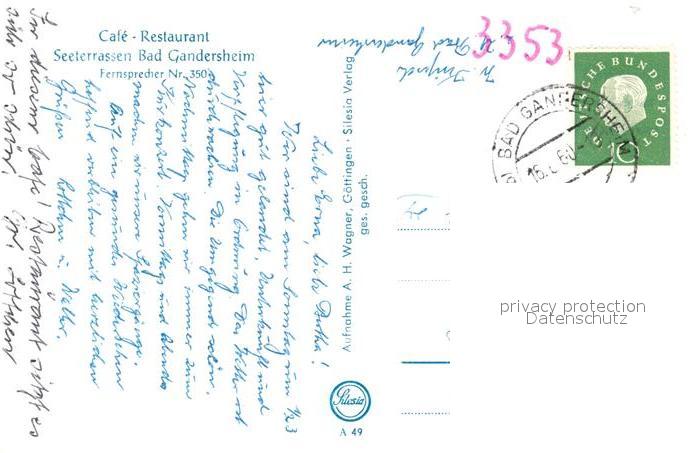 43352538 alte Postkarte Bad Gandersheim Cafe Restaurant Seeterrassen postalisch gelaufen Erhaltung siehe scans [WerneD78] KatCode: 11110003155001