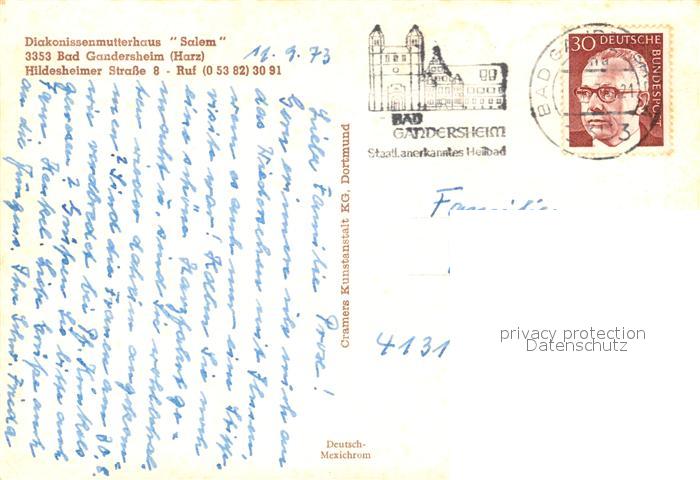 73047776 alte Postkarte Bad Gandersheim Diakonissenmutterhaus Salem postalisch gelaufen Erhaltung siehe scans [KathaD81] KatCode: 11110003155001