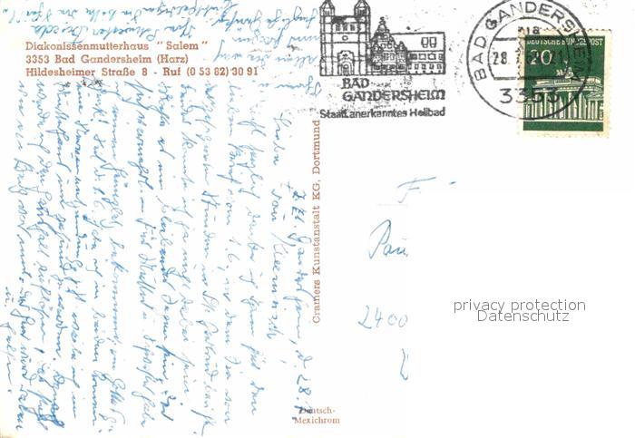 72778828 alte Postkarte Bad Gandersheim Diakonissenmutterhaus Salem postalisch gelaufen Erhaltung siehe scans [FriedD77] KatCode: 11110003155001
