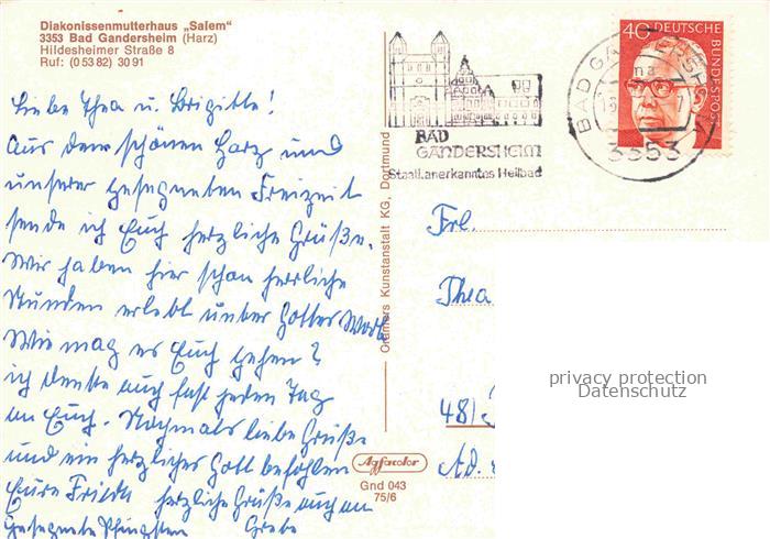 74022456 alte Postkarte Bad Gandersheim Diakonissenmutterhaus Salem postalisch gelaufen Erhaltung siehe scans [FriedD77] KatCode: 11110003155001