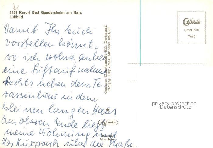 73724560 Bad Gandersheim Fliegeraufnahme postalisch nicht gelaufen Erhaltung siehe scans [WerneD78] KatCode: 11110003155001