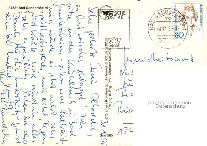 73600158 alte Postkarte Bad Gandersheim Fliegeraufnahme postalisch gelaufen Erhaltung siehe scans [FriedD77] KatCode: 11110003155001