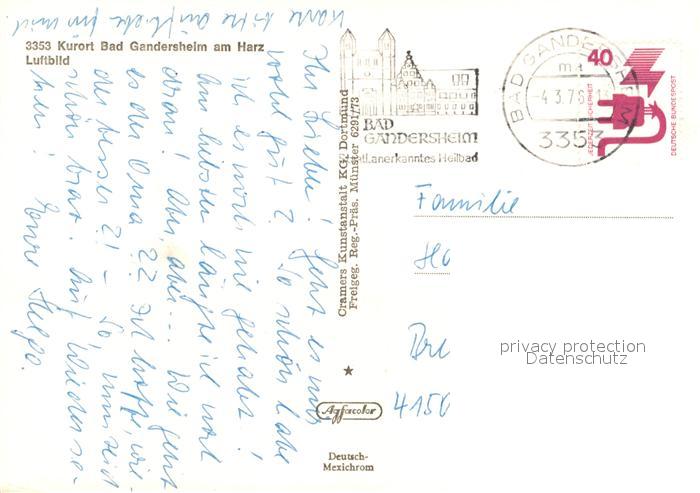 73176110 alte Postkarte Bad Gandersheim Fliegeraufnahme postalisch gelaufen Erhaltung siehe scans [NatalD47] KatCode: 11110003155001