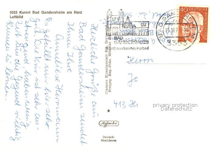 73166076 alte Postkarte Bad Gandersheim Fliegeraufnahme postalisch gelaufen Erhaltung siehe scans [KathaD81] KatCode: 11110003155001