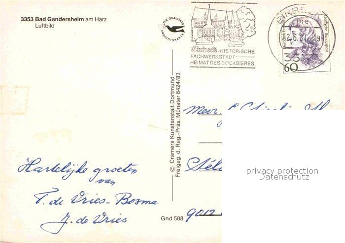 72870354 alte Postkarte Bad Gandersheim Fliegeraufnahme postalisch gelaufen Erhaltung siehe scans [LiesaD40] KatCode: 11110003155001