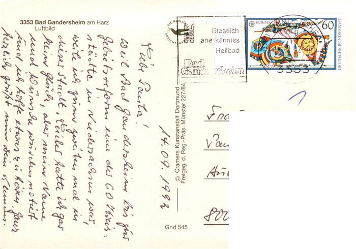 73879021 alte Postkarte Bad Gandersheim Fliegeraufnahme postalisch gelaufen Erhaltung siehe scans [WerneD78] KatCode: 11110003155001