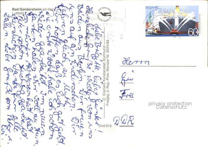 72154829 alte Postkarte Bad Gandersheim Fliegeraufnahme postalisch gelaufen Erhaltung siehe scans KatCode: 11110003155001