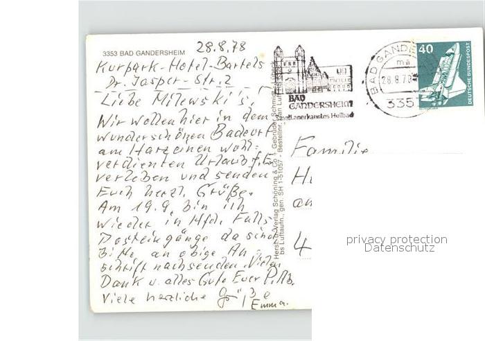 71945688 alte Postkarte Bad Gandersheim Fliegeraufnahme postalisch gelaufen Erhaltung siehe scans KatCode: 11110003155001