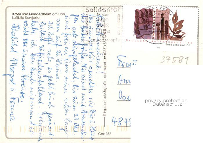 73322895 alte Postkarte Bad Gandersheim Fliegeraufnahme mit Kurviertel postalisch gelaufen Erhaltung siehe scans [WerneD78] KatCode: 11110003155001