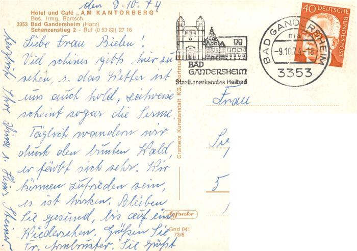 73897521 alte Postkarte Bad Gandersheim Hotel Cae Am Kantorberg Gastraeume Terrasse postalisch gelaufen Erhaltung siehe scans [WerneD78] KatCode: 11110003155001