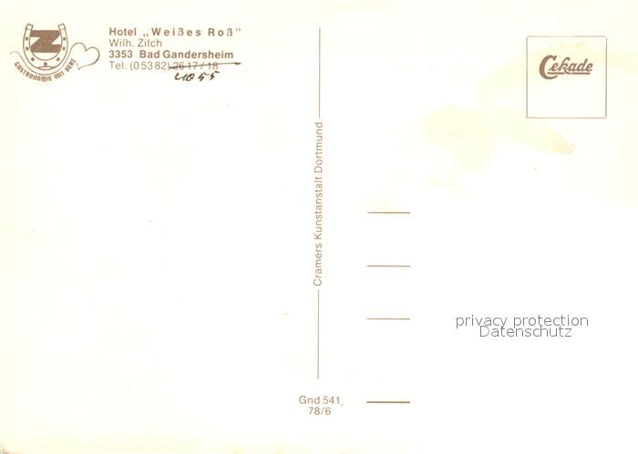 73122136 Bad Gandersheim Hotel Weisses Ross postalisch nicht gelaufen Erhaltung siehe scans [NatalD47] KatCode: 11110003155001