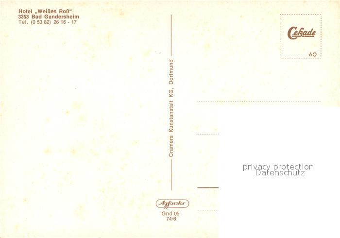 73047786 Bad Gandersheim Hotel Weisses Ross postalisch nicht gelaufen Erhaltung siehe scans [KathaD81] KatCode: 11110003155001