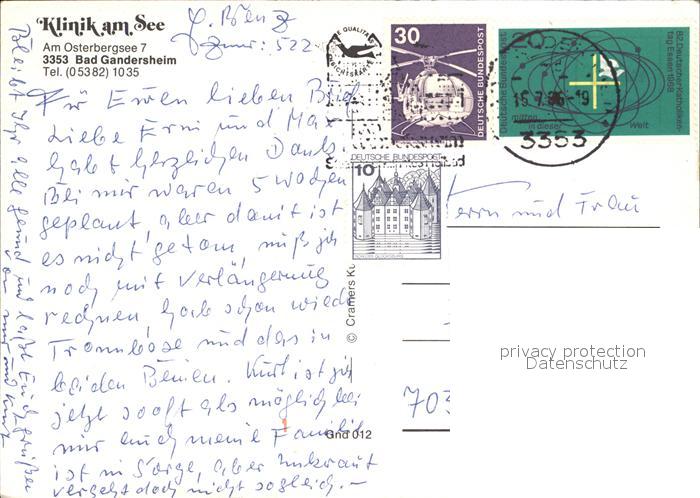 72497446 alte Postkarte Bad Gandersheim Klinik am See postalisch gelaufen Erhaltung siehe scans KatCode: 11110003155001