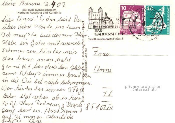 72764491 alte Postkarte Bad Gandersheim Kurheim Roswitha Kurklinik postalisch gelaufen Erhaltung siehe scans [AndreD76] KatCode: 11110003155001