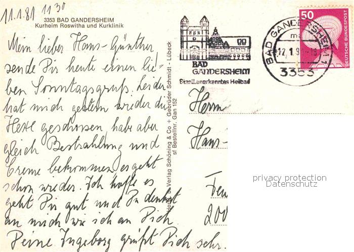 72701193 alte Postkarte Bad Gandersheim Kurheim Roswitha Kurklinik postalisch gelaufen Erhaltung siehe scans [KathaD79] KatCode: 11110003155001