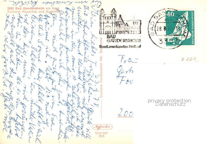 73129451 alte Postkarte Bad Gandersheim Kurheim Roswitha Kurklinik postalisch gelaufen Erhaltung siehe scans [PaolaD17] KatCode: 11110003155001