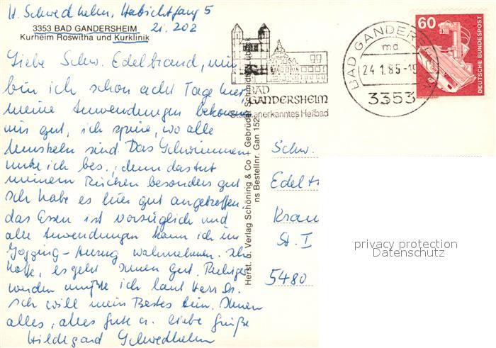 73173215 alte Postkarte Bad Gandersheim Kurheim Roswitha und Kurklinik postalisch gelaufen Erhaltung siehe scans [LiesaD40] KatCode: 11110003155001