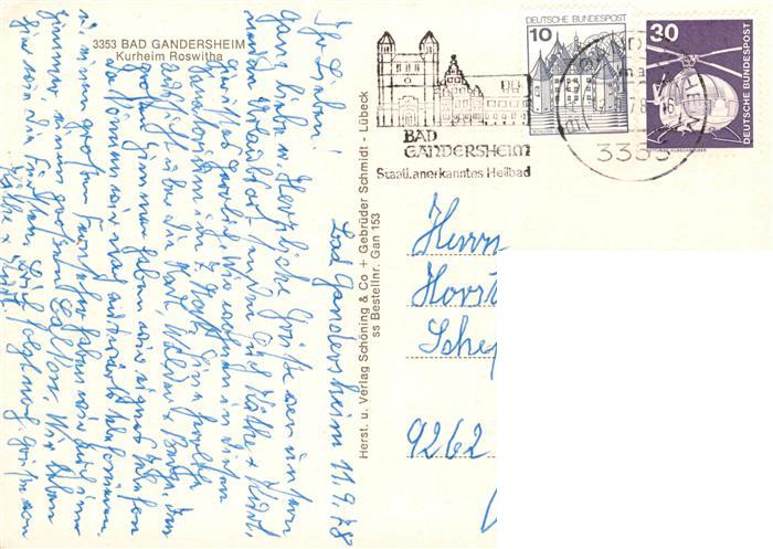 73882599 alte Postkarte Bad Gandersheim Kurheim Roswitha postalisch gelaufen Erhaltung siehe scans [WerneD78] KatCode: 11110003155001
