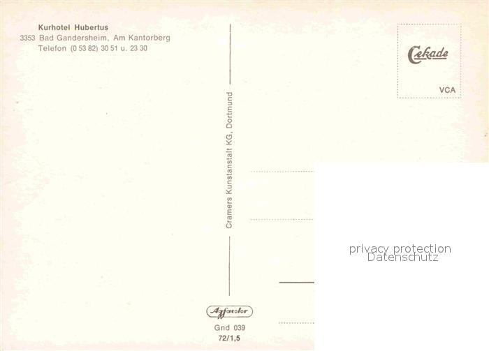 72812410 Bad Gandersheim Kurhotel Hubertus postalisch nicht gelaufen Erhaltung siehe scans [NatalD47] KatCode: 11110003155001