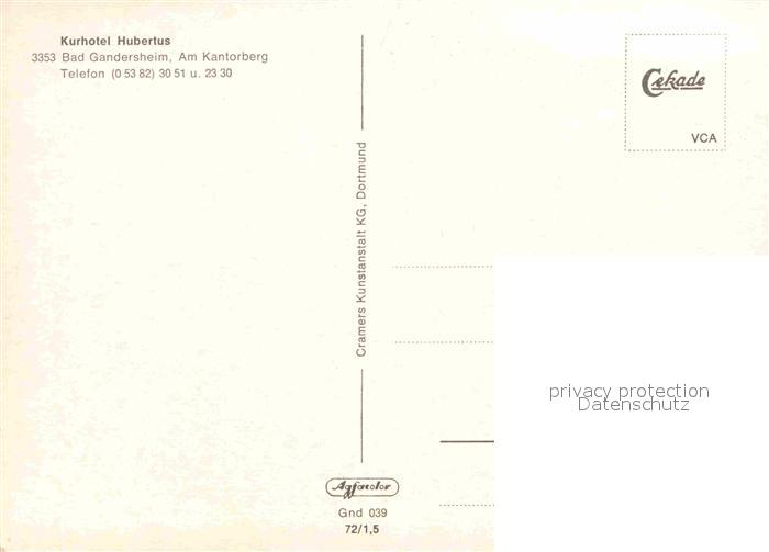 72717697 Bad Gandersheim Kurhotel Hubertus postalisch nicht gelaufen Erhaltung siehe scans [FriedD77] KatCode: 11110003155001