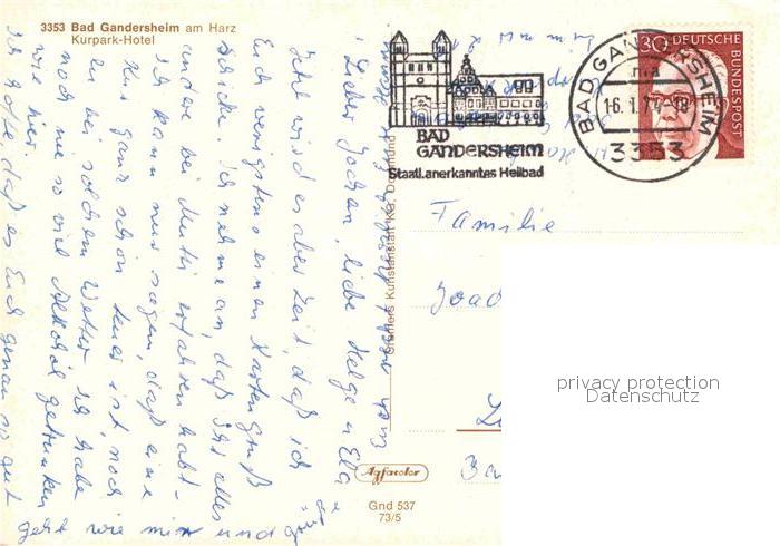 72778829 alte Postkarte Bad Gandersheim Kurpark Hotel postalisch gelaufen Erhaltung siehe scans [FriedD77] KatCode: 11110003155001