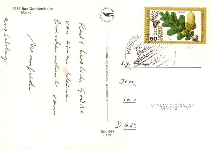 73157765 alte Postkarte Bad Gandersheim Markt postalisch gelaufen Erhaltung siehe scans [WerneD78] KatCode: 11110003155001