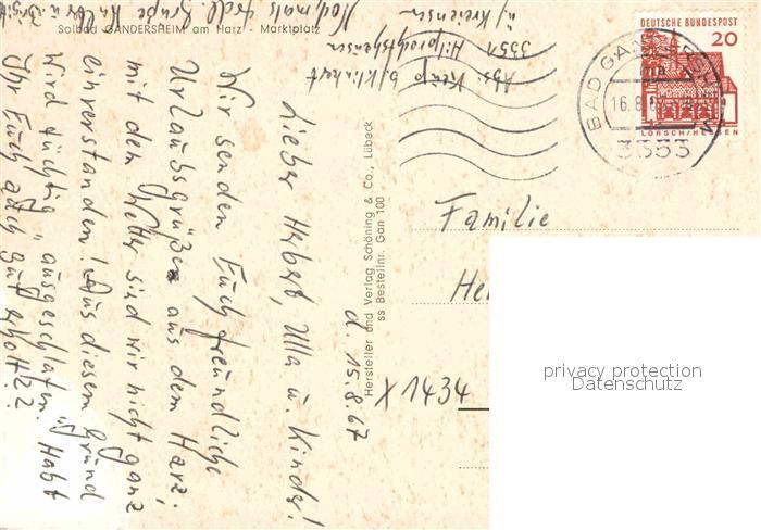 72899262 alte Postkarte Bad Gandersheim Marktplatz postalisch gelaufen Erhaltung siehe scans [NatalD47] KatCode: 11110003155001