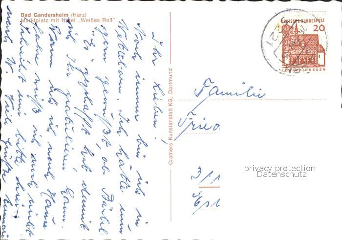 72032686 alte Postkarte Bad Gandersheim Marktplatz mit Hotel Weisses Ross Fachwerkhaus postalisch gelaufen Erhaltung siehe scans KatCode: 11110003155001