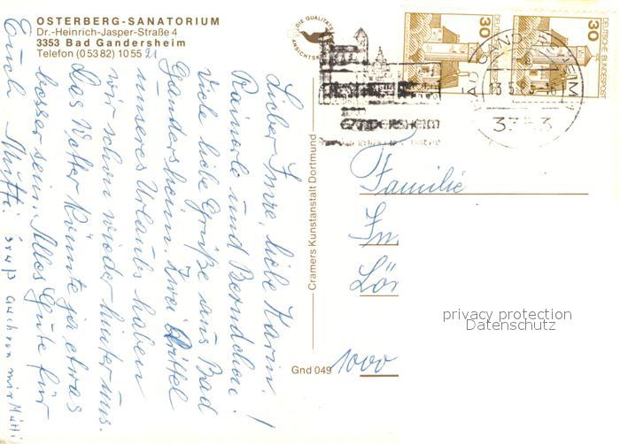73204388 alte Postkarte Bad Gandersheim Osterberg Sanatorium Hallenbad postalisch gelaufen Erhaltung siehe scans [FriedD77] KatCode: 11110003155001