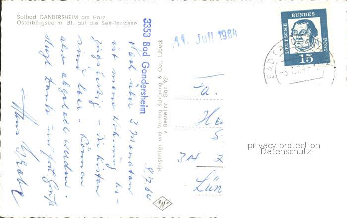 72006899 alte Postkarte Bad Gandersheim Osterbergsee See-Terrasse postalisch gelaufen Erhaltung siehe scans KatCode: 11110003155001